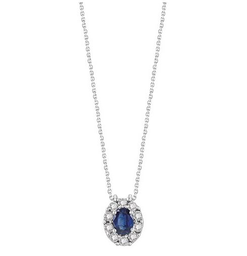 Collana donna oro bianco Bliss Regal con Zaffiro Blu e diamantri