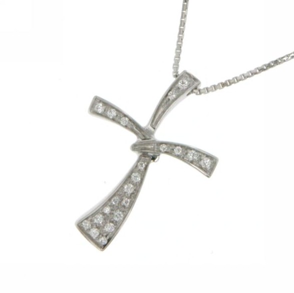 Collana donna oro bianco Croce con diamanti tot. ct. 0,07 - Mirco Visconti Gioielli