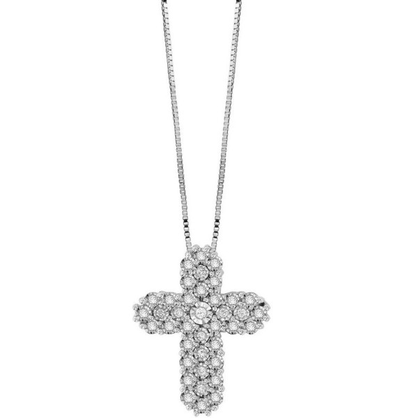 Collana donna Croce Bliss Rugiada oro bianco 18kt. e Diamanti