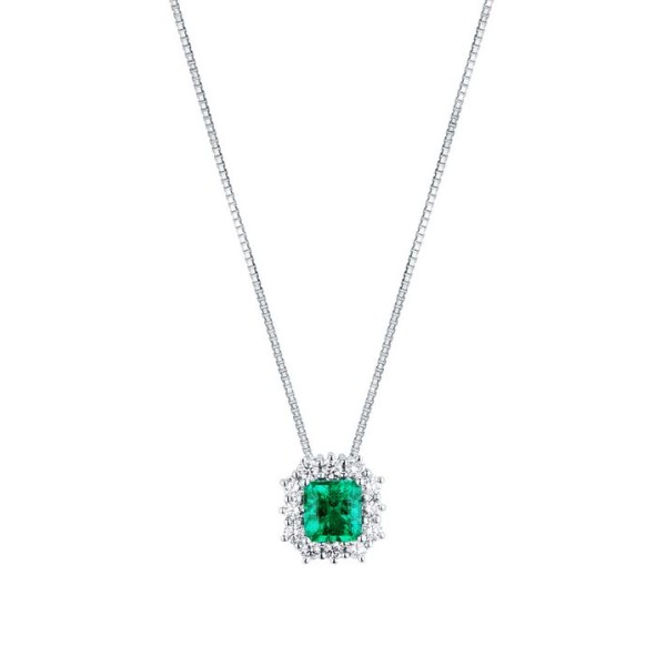 Collana donna oro bianco con Smeraldo e diamanti - Mirco Visconti gioielli