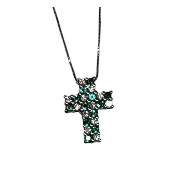 Scopri i dettagli di Collana donna oro bianco Bibigì Croce con diamanti e smeraldi Pret-a-porter
