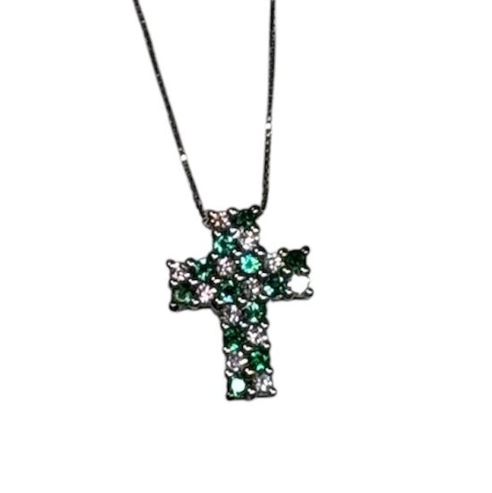 Collana donna oro bianco Bibigì Croce con diamanti e smeraldi Pret-a-porter