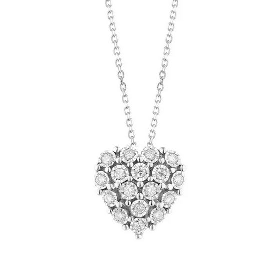 Collana donna oro bianco Bliss Rugiada Cuore con diamanti