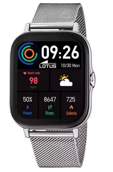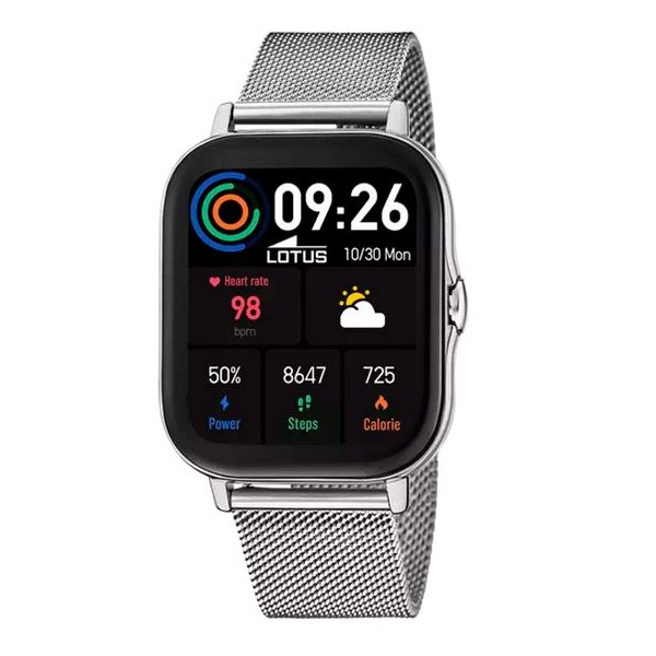 Orologio intelligente Lotus Smartime 50034/1. Con cassa in lega di zinco dotata di un bracciale in acciaio e di un cinturino supplementare in silicone.