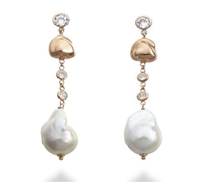 Orecchini argento rosa con perle barocche e gemme Swarovski - Nihama
