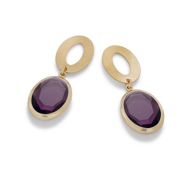 Orecchini pendenti in AG 925‰ placcato oro giallo 23 kt. con pasta vitrea Ametista
