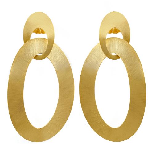 Maxi Orecchini con due elementi ovali tagliati e intracciati su foglio d'argento.