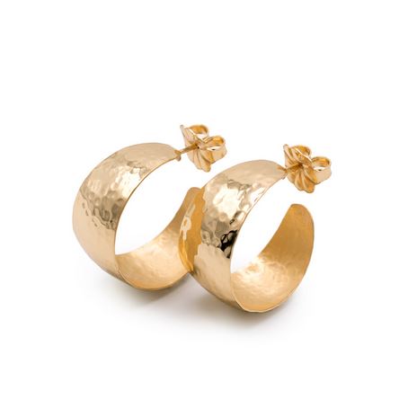 Orecchini a cerchio con superficie battuta lucida in argento 925‰ placcato oro giallo 23kt.