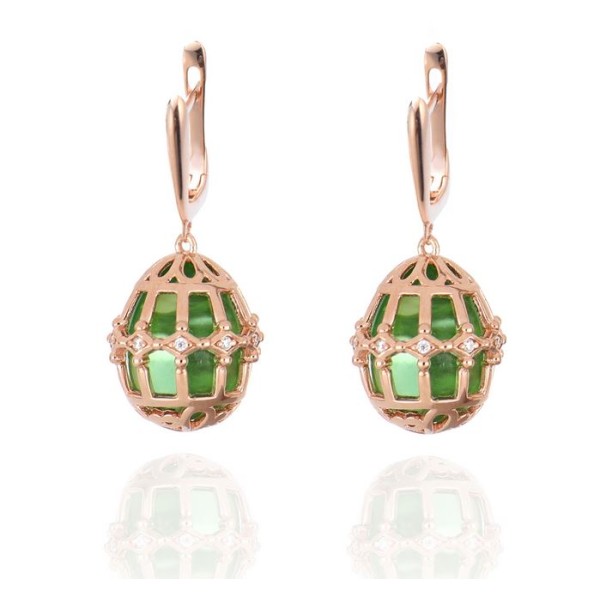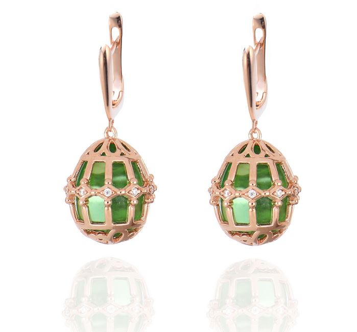 Orecchini donna argento rose gold e Occhio di Gatto Verde Tsars Collection