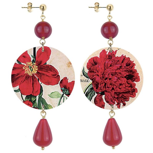 Scopri i dettagli di Orecchini ottone Lebole The Circle Fiore rosso