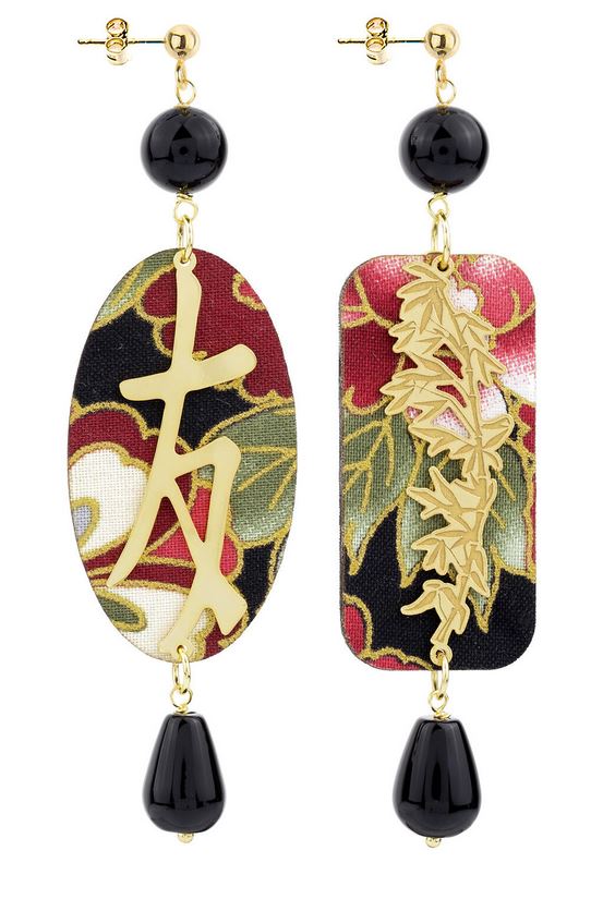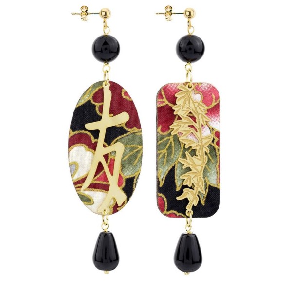 Orecchini Kanji Amore in tessuto di kimono steso su