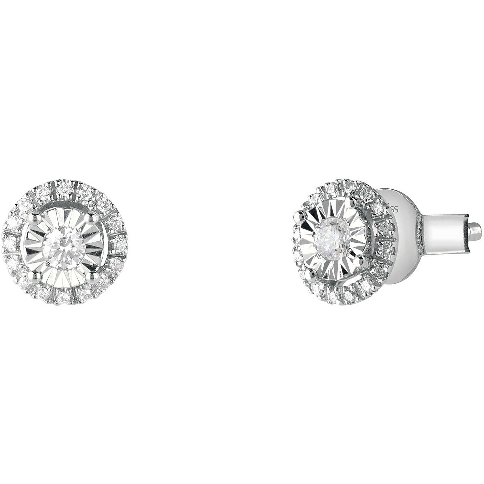 Orecchini donna Bliss Sole oro bianco 18kt. punto luce con Diamanti tot. ct. 0.10