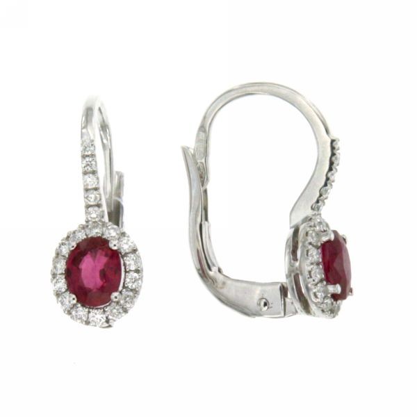 Orecchini donna oro bianco con Rubini e Diamanti gancio monachella - Cicalese Gioielli Valenza Made in Italy