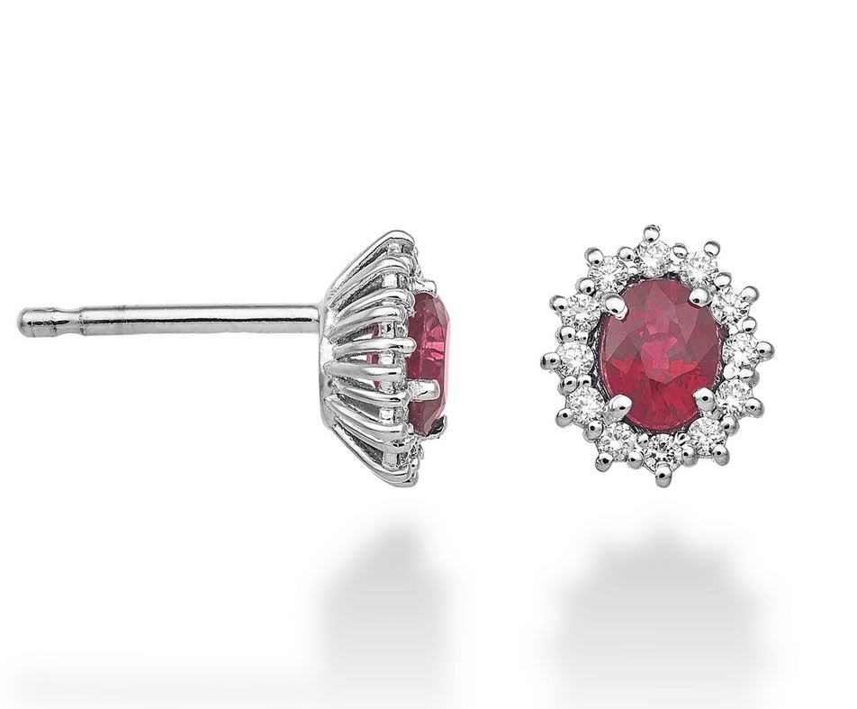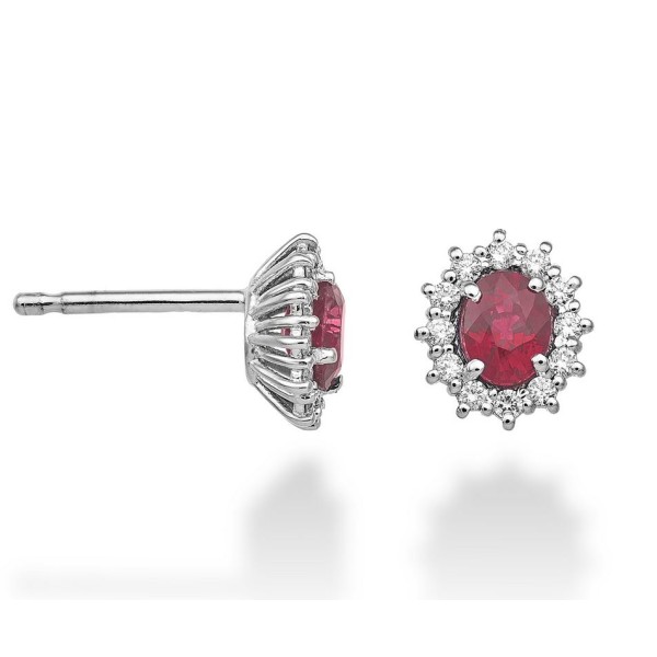 Scopri i dettagli di Orecchini donna oro bianco con Rubino Ovale 5x4 e Diamanti - Nihama