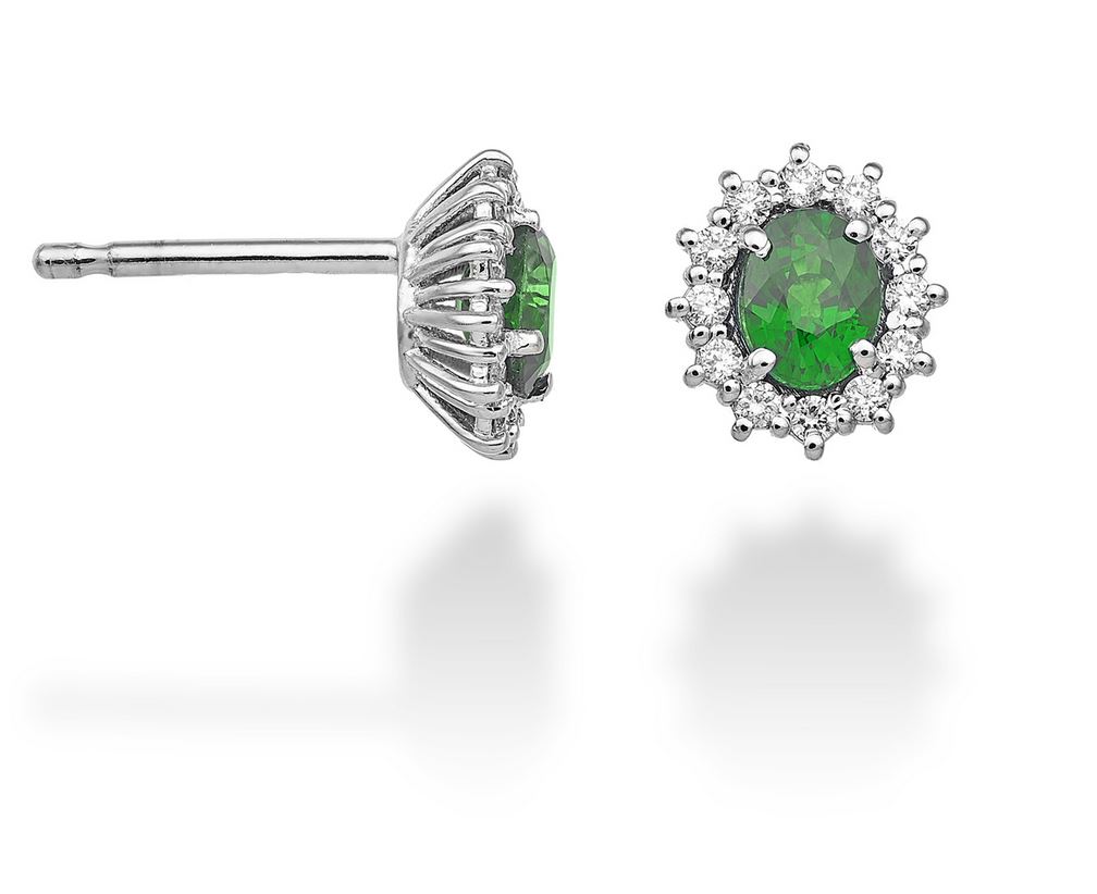 Orecchini donna oro bianco con Smeraldo Ovale 5x4 e Diamanti - Nihama