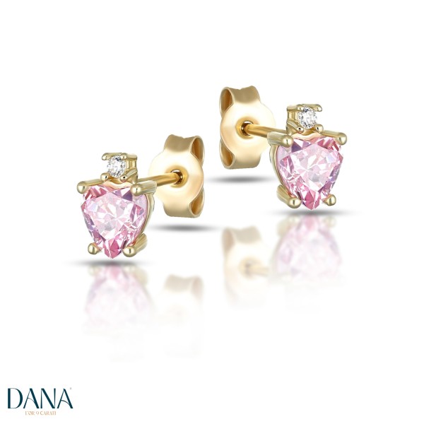 Orecchini oro giallo 9kt cuore rosa - DANA L'OR 9 Carati