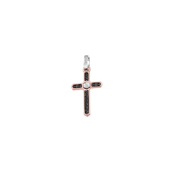 Pendente Croce oro bianco e rosa con diamanti neri - Zancan